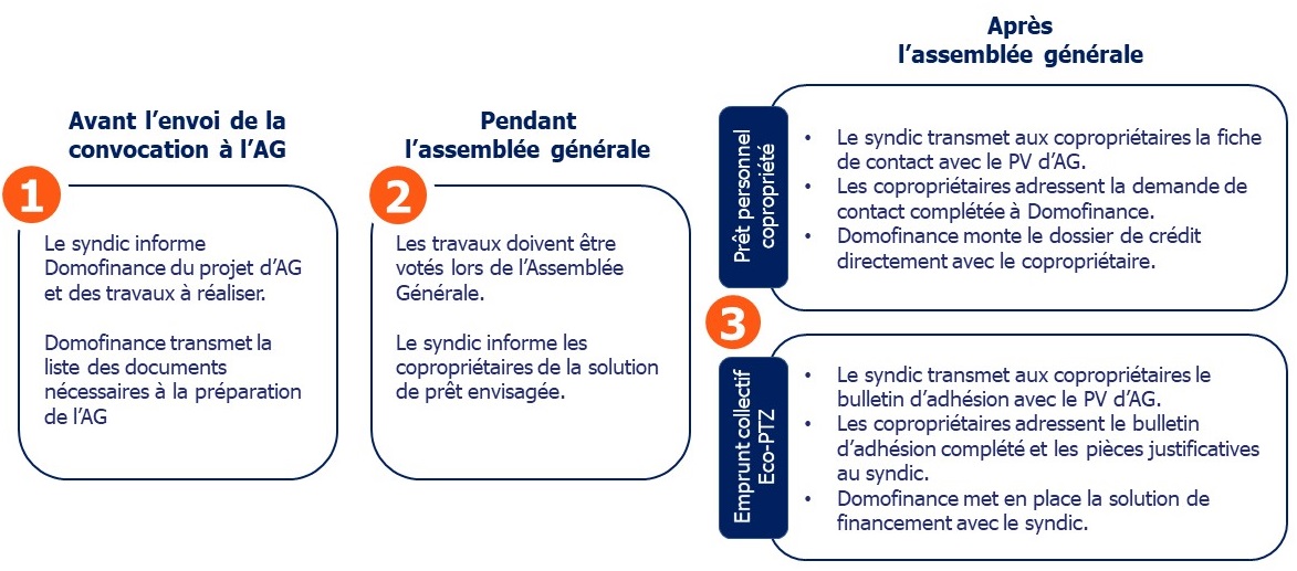 Veuillez contacter votre Responsable Commercial Régional pour vérifier l'éligibilité de votre projet à l'Eco-PTZ collectif et obtenir les résolutions à faire voter en AG.